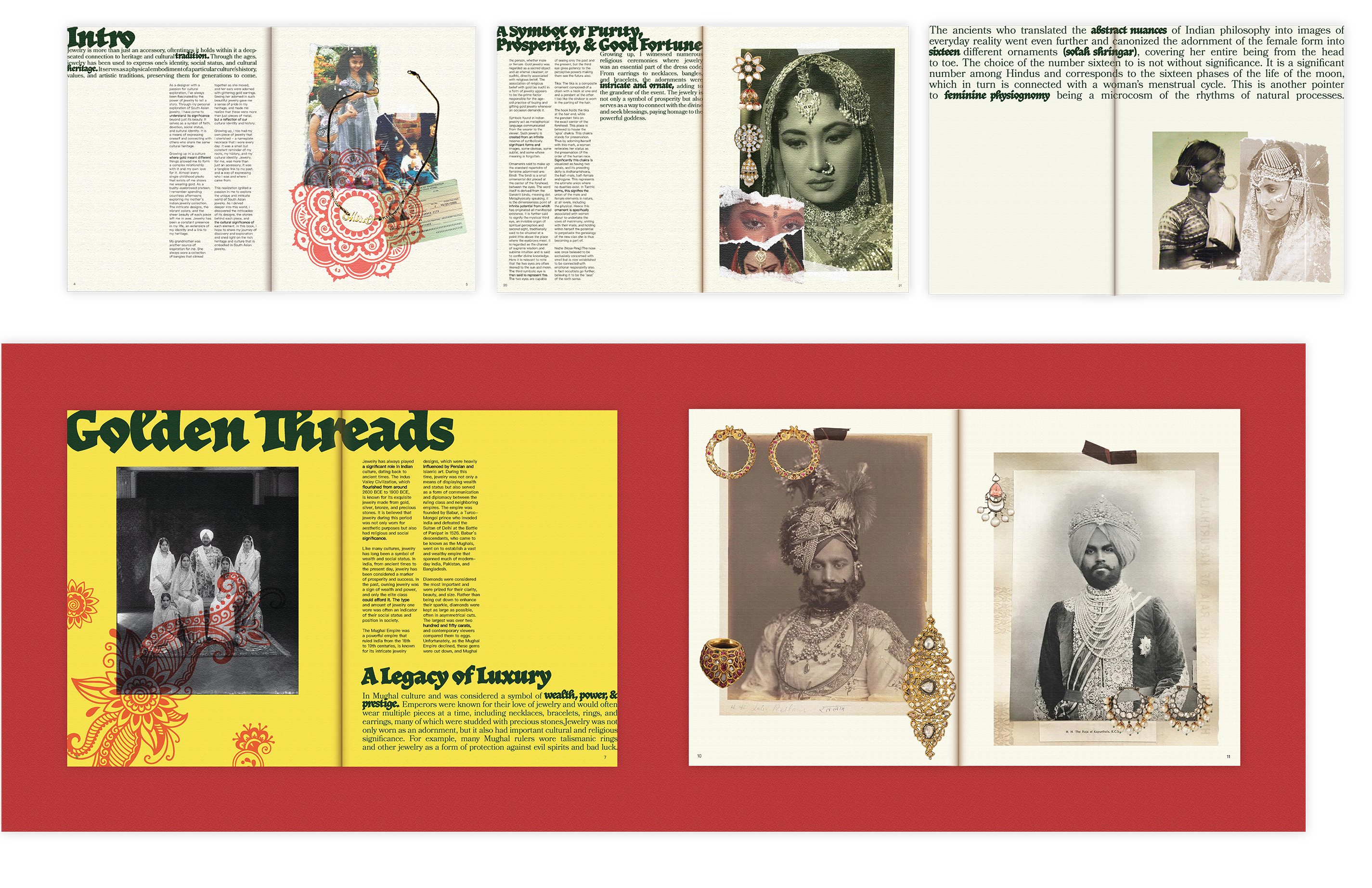 [Personal Project]This book dives into my personal connection to jewelry and how it has played a crucial role in shaping my identity. Through captivating stories and insightful anecdotes, Linked showcases the deep-rooted history and traditional practices associated with jewelry while examining the intersections between jewelry, tradition, and identity politics. Ultimately, Linked seeks to celebrate and preserve the cultural significance of jewelry within South Asian communities and provide new perspectives on this rich and diverse cultural tradition.
